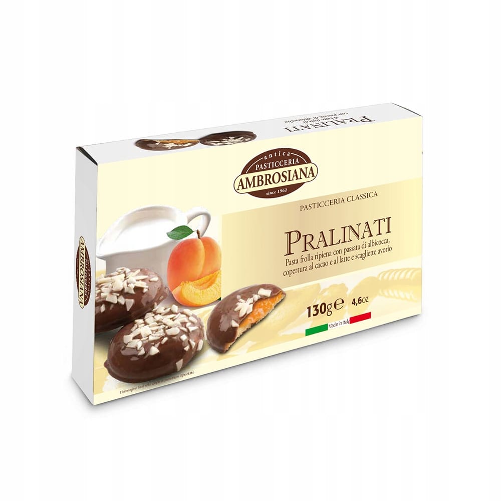 AMBROSIANA to synonim włoskiej tradycji i najwyższej jakości w świecie wypieków. Kruche ciastka z nadzieniem morelowym, oblane delikatną czekoladą, to prawdziwa uczta dla zmysłów i doskonały sposób na chwilę słodkiej przyjemności.