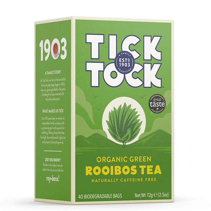 d15806b75a77bdcd0ebd2bd4824d6222TICK TOCK GREEN ROOIBOS 40 Herbata Zielona Rooibos Organic Bio UK DECAF